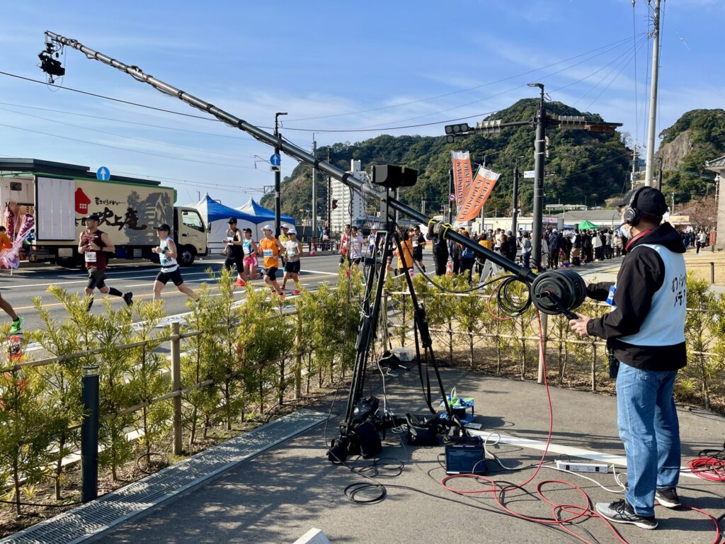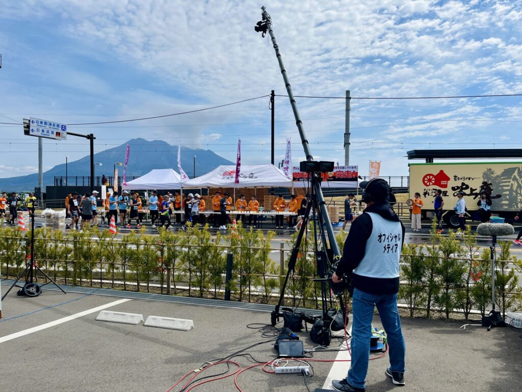 クレーン撮影が3年目ということで「仙巌園前にはクレーンカメラがある!」と認識しているランナーが増え、自らクレーンカメラに手を振ってくださる方が続々。